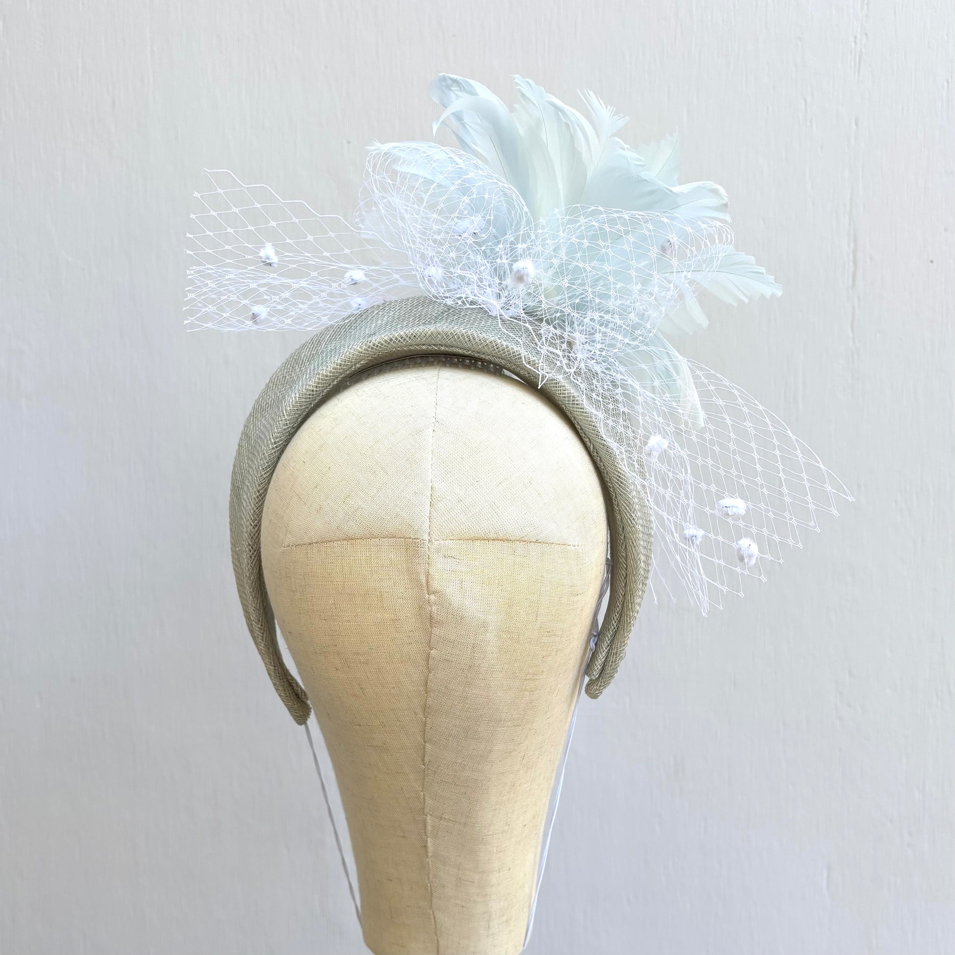 Perfect for any special occasion, our classic Halo headband is beautifully hand-blocked from light blue sinamay straw. It features a delicate, handcrafted feather flower in light blue, complemented by soft blue veiling. Designed with an elastic band, it provides a secure and comfortable fit.