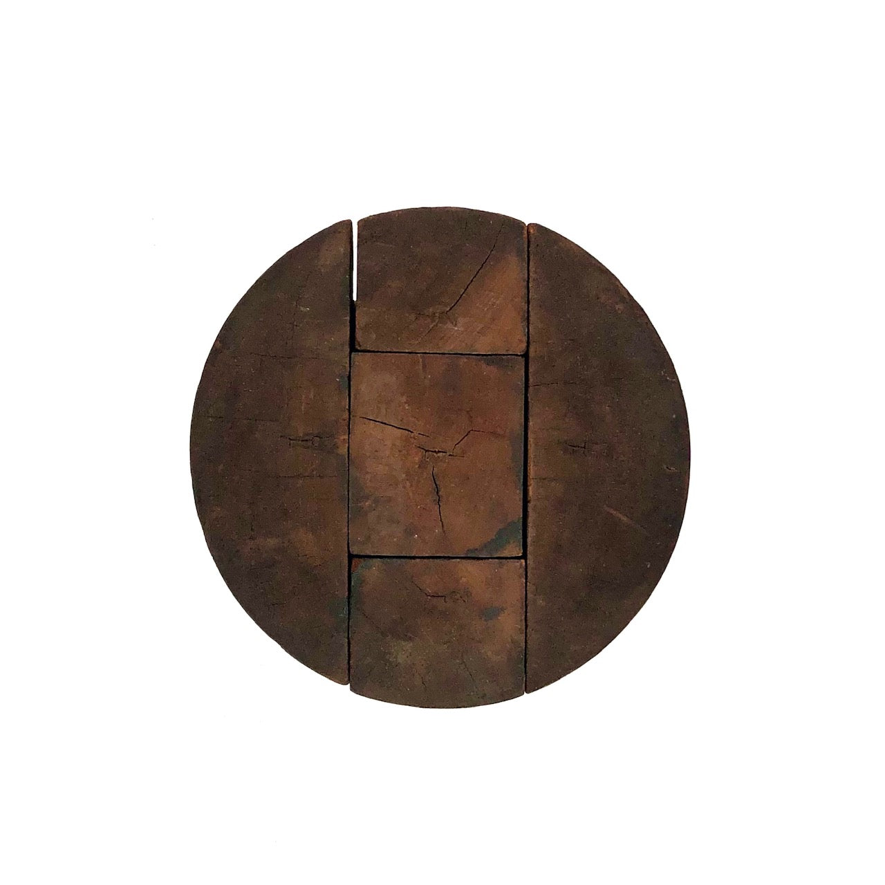 5-Piece vintage wood puzzle hat block. Size: lower edge 20", outer edge27 1/2", height 6 1/4"
